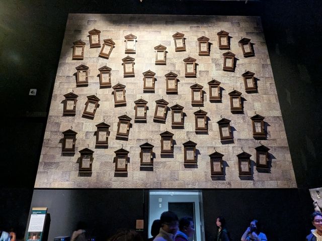 こちらも劇中で印象的な「動く階段」。実際に動く様子を見ることができます。壁一面に架けられた300枚以上の肖像画は、撮影スタッフが様々な服装で映っているそうです。肖像画の中に自分たちの姿を映し出すこともできるというアトラクションも。