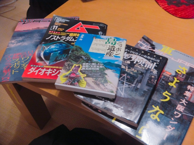 その後もたくさんの本をめくりながらいろいろな話で盛り上がる旅トーク。島だけに限らず、「ワンダーJAPAN」や「ムー」など、ディープでマニアックな観光情報にも対応しております!
