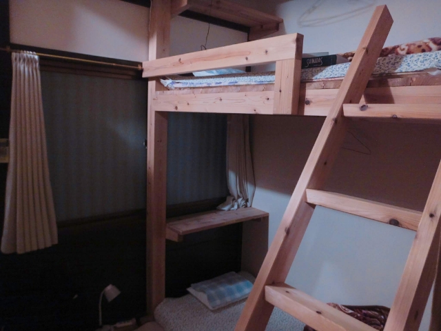 こちらがドミトリー。2段ベッドが2つある部屋ですが、部屋の中央がカーテンで仕切られているので実質2人部屋みたいな感覚です。
