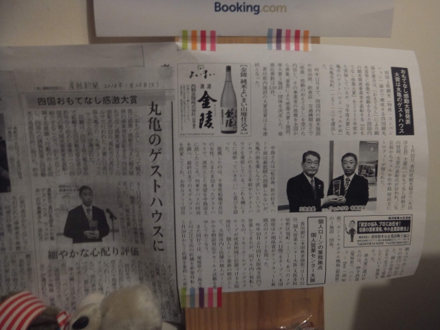 そんなこちらのゲストハウス、四国内の宿泊施設や飲食店、交通機関などの観光関連事業者を対象とした四国おもてなし感激大賞で『大賞』に輝いているのです!