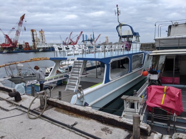 本当ならば旅行2日目の3/25(金)で予約していましたが、前日の夕方に不催行の連絡が・・・。すぐに予定を変更して最終日となる3/29(火)に再予約し、無事に乗船することができました。冬の海は荒れやすいので、欠航になることもしばしば。