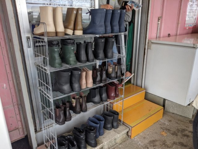 ここで乗船名簿を記入して受付。乗船にあたり、レインコートとライフジャケットを装備します。この2つが結構あったかいので、船内でもほとんど寒さは感じませんでした。また、レインブーツのレンタルもやってます。ヒールなどで来てしまった方は、履き替えてから乗船しましょう。
