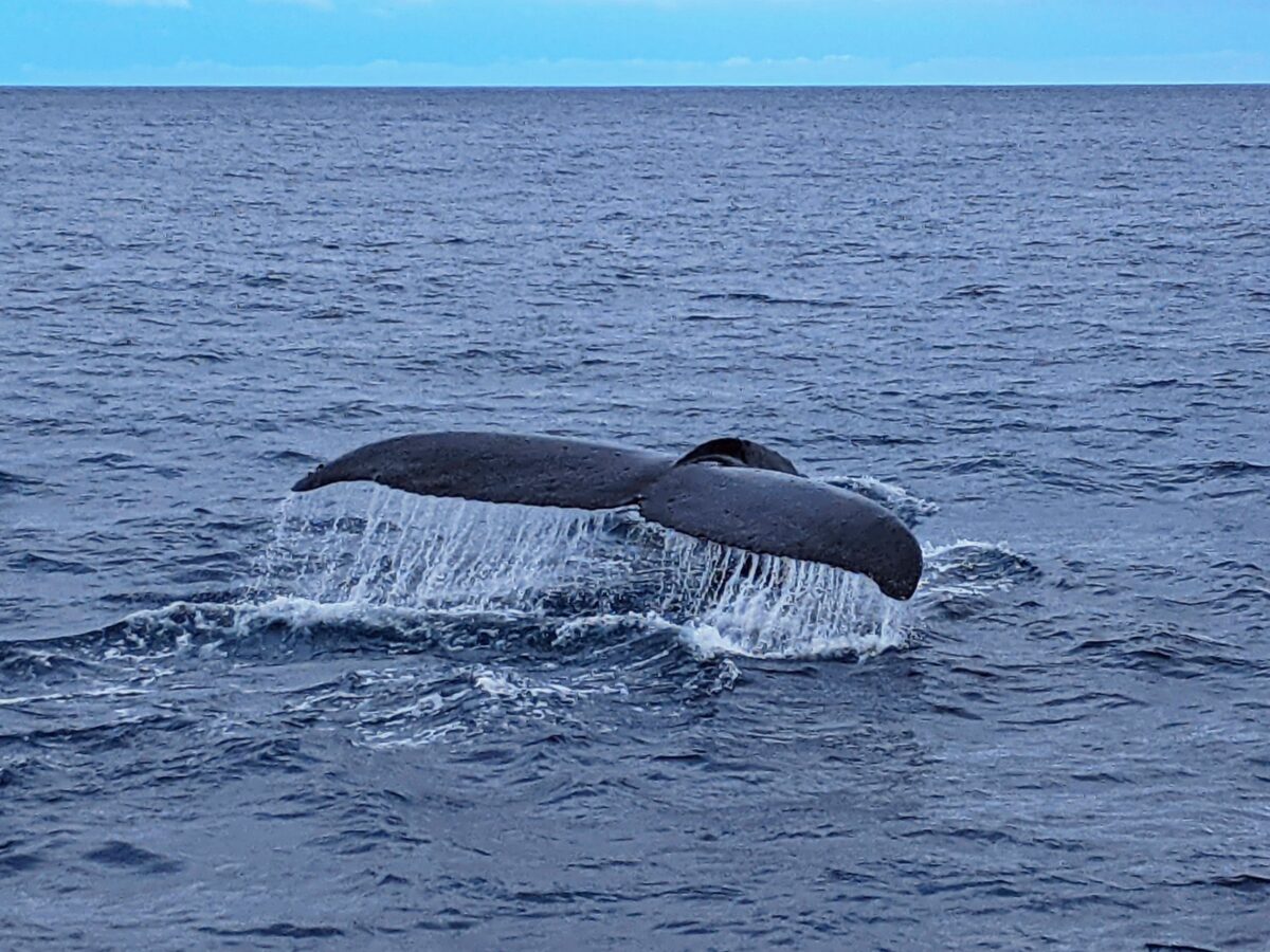 この尾ビレは潜水の合図。これを見たあとは5〜10分ほど潜って出てこないので、その間はみんな休憩タイム。