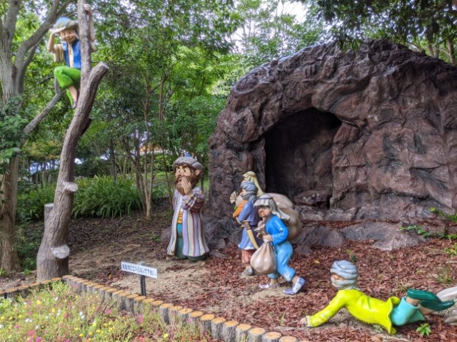 様々なおとぎ話のワンシーンが立体で表現された童話の森。テーマは子供向けな雰囲気ですが、実際に木々が植えられた森の中を歩いてめぐるので、大人一人でもそんなに抵抗はありません。