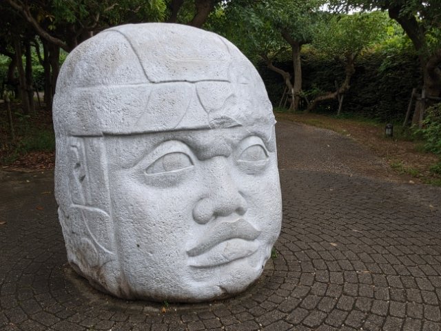 メキシコの巨石人頭像。紀元前1500年頃メキシコに現れたオルメカ文明の遺跡で見つかった石像です。オルメカ文明は巨石や宝石の加工技術を持っており、数学や暦も発達していました。その技術や知識は、後のマヤ文明へと引き継がれていきます。