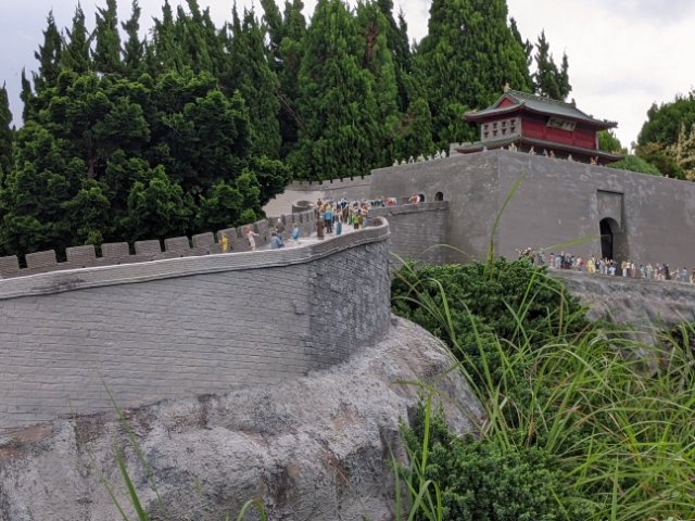 中国の万里の長城。ミニチュア系テーマパークではおなじみの巨大な城郭。その総延長は21,196kmと言われています。1/25にしても847kmというとんでもスケールなので、再現されているのはごく一部だけ。