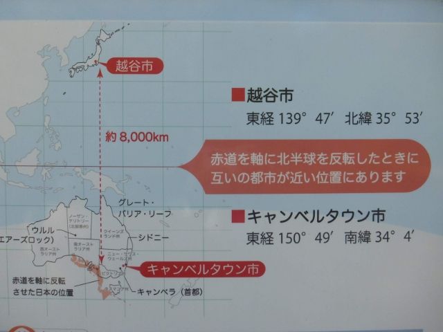この野鳥の森がある越谷市は、オーストラリアのキャンベルタウン市との姉妹都市。越谷市は北緯35°、キャンベルタウンは南緯34°と、赤道を軸に反転させると近い位置にあるのです。