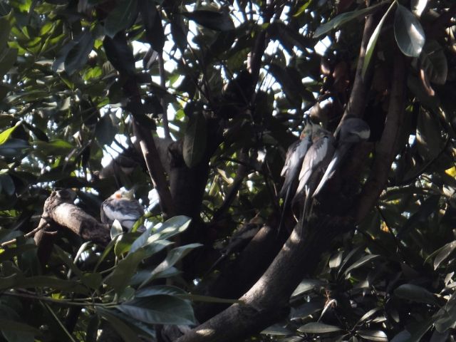 オカメインコも見つけました!樹の上で葉っぱに隠れるように休んでおり、見つけるのにとっても苦労しました・・・・!