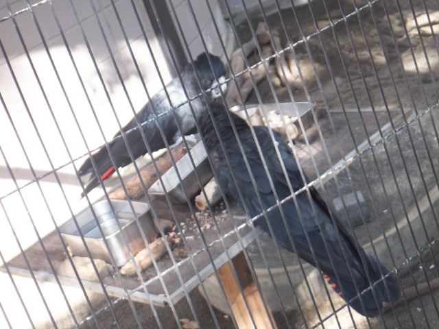 一方こちらはシックなカラーリングのアカオクロオウム。大きくて黒くてとってもカッコいいオウムです。エサを食べるときにクチバシをパチパチとならしており、どことなく不良っぽさを感じます。