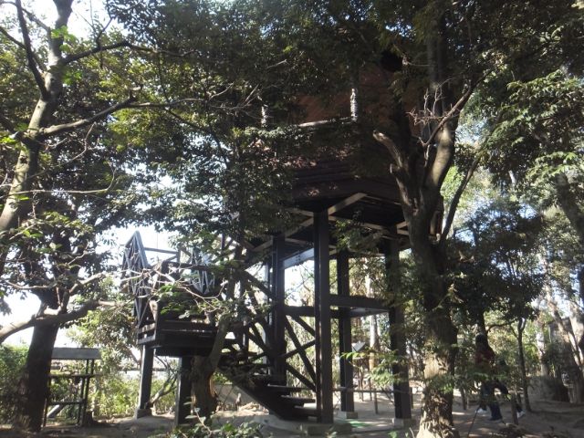 ケージの中には観察棟という展望台があります。ここに登れば、樹上高くにいる鳥たちも見つけることができるのです。