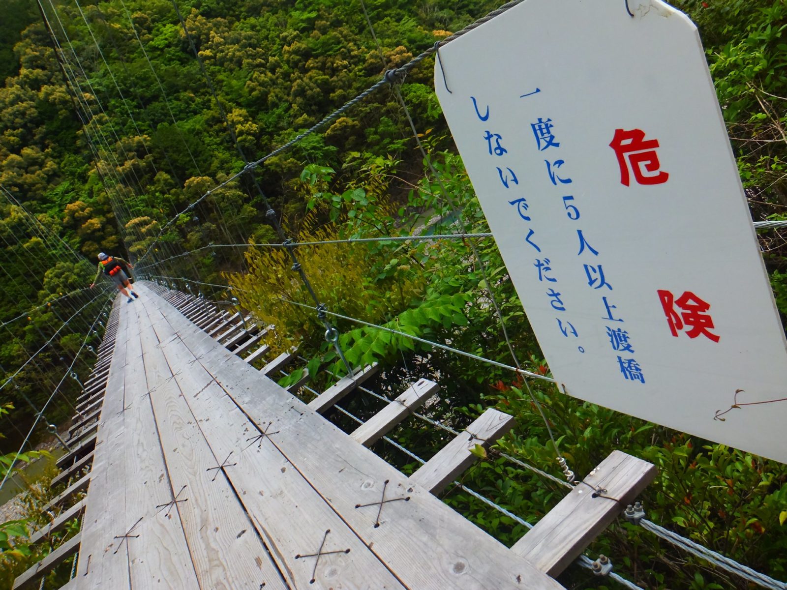 長さ90m、高さ10mと比較的コンパクトですが、この吊り橋かなりコワイ!!!