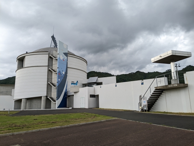 1992年にオープンした施設ですが、2011年には震災の影響で休館。2017年7月15日に再開しました。外壁には、3.11の津波の高さを示す印も描かれています。