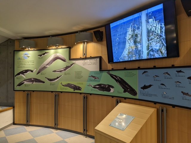 先ほどのマッコウクジラの骨格標本は、商業捕鯨が行われた最後の年に三陸沖で捕獲されたもの。あんなに大きな生き物を捕獲していたなんて、驚くばかりです・・・!学術的な価値はもちろんのこと、「捕鯨の歴史を後世に伝える」という意味でも非常に重要な役割を果たしていることがひしひしと伝わってきました。