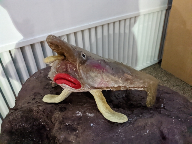 こ、これはレッドリップド・バットフィッシュ!赤い唇と口ひげがユーモラスすぎるサカナ。さらにヒレを脚のように使って歩き回るという生態もある、超へんないきものです。アンコウ目に属するサカナですが、その中では全然大きいものではありません。こうして、「最大コレクション説」は崩れ去りました。