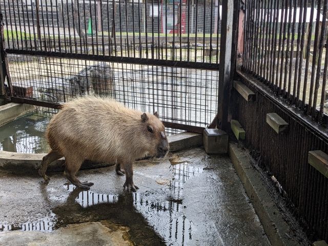 カピバラも飼育されています。もしかして、冬場は温泉に入ったりもするのでしょうか。
