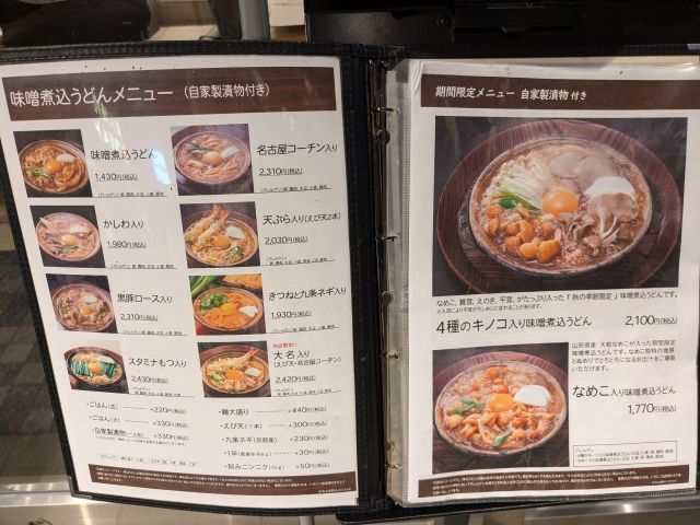 なお、スタンダードな味噌煮込みうどんが1,430円ですが、それ以外はだいたい2,000円超え。それなりにお値段がするメニューだったりします。