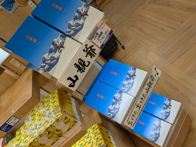 「イチオシ」というポップが添えられており、「出てきた、出てきた、山親爺〜♪」という謎のフレーズも。