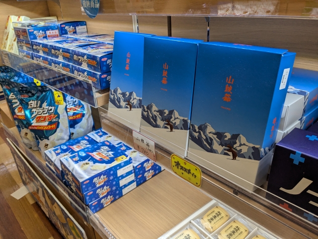 続いて訪れたJAL PLAZA。こちらでも「オススメです」のポップがありますが、商品の説明はナシ。他のお土産には解説や写真が添えられているのに、これは何も記載されていません。