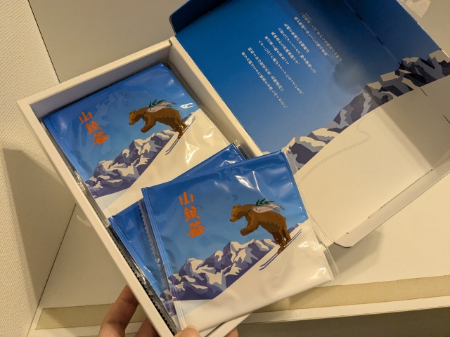 箱の中に並んでいるのは、スキー熊の姿が描かれた小袋。
