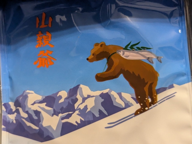 よく見るとお菓子にもまたまたスキー熊がプリントされています。ひたすら熊推しです。