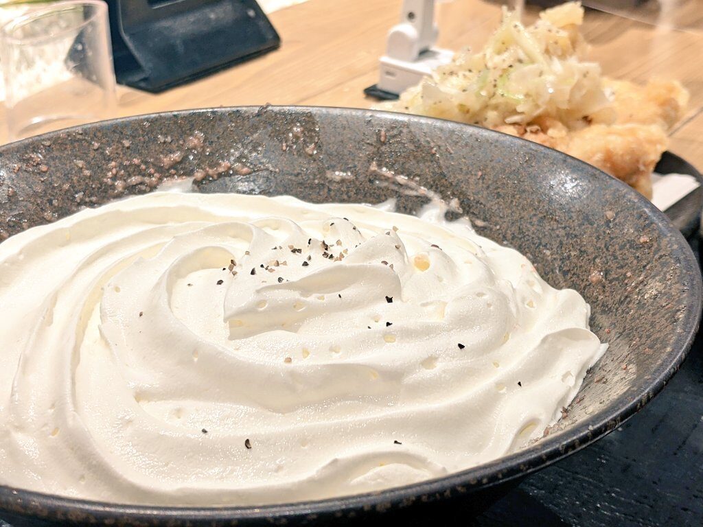 おしゃれな雰囲気と独創的なメニューで話題のうどん屋さん。特に目を引くのはクリームがたっぷりと乗った「白いクリームうどん」。お丼を埋め尽くす真っ白なクリーム、こんなうどん見たことないです!