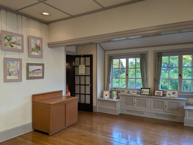 館内には展示室もあります。ここは貸しギャラリーとなっており、訪問した際は水彩画や油絵が展示されておりました。