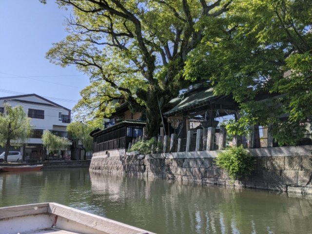 掘割に面して建っているのは沖端水天宮(おきのはたすいてんぐう)。毎年5/3~5には大祭が行われており、舟舞台の上で芝居やお囃子が繰り広げられるそう。本来ならば今日はお祭りの日だったのですが、2020年・2021年はコロナウイルスの影響で中止となっています。