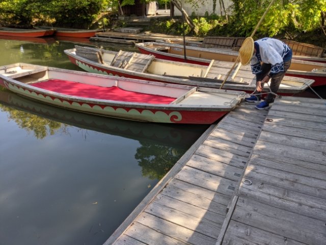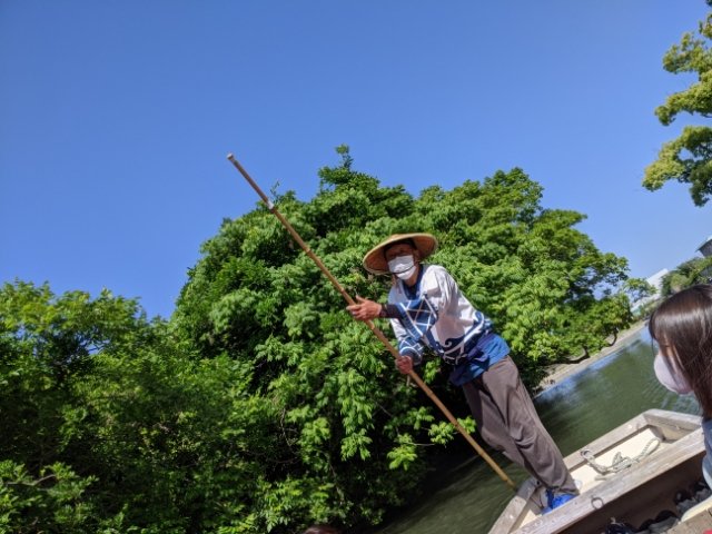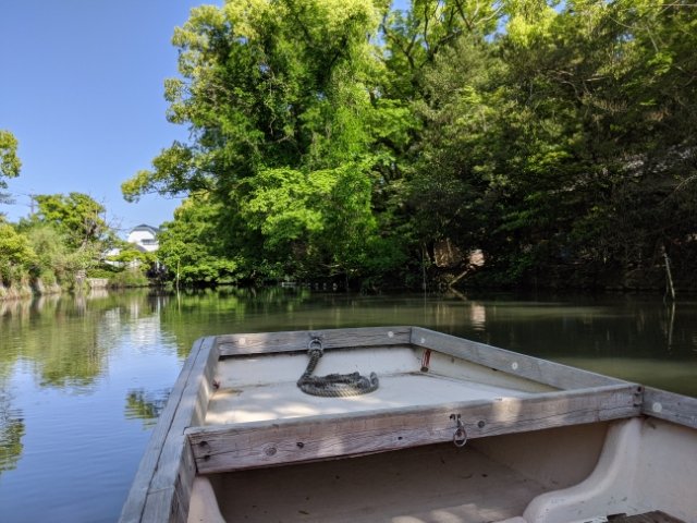 中でも人気なのは、掘割をどんこ舟で進んで行く「川下り」。次々と流れてゆく舟は見ているだけでも心地よいのですが、せっかくなので乗船してみることにしました!
