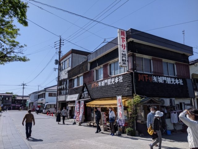 川下りを扱っている会社は何社もあるため、あちこちで乗船場を目にします。