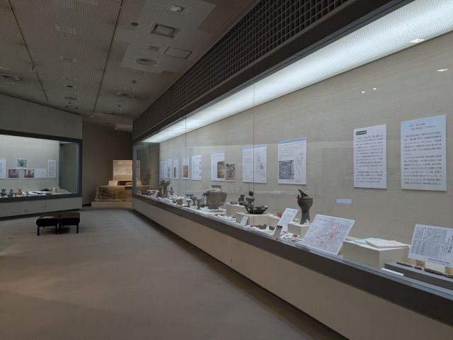 展示室は昔ながらの歴史資料館といったシンプルなスタイル。デジタルコンテンツはなく、様々な歴史資料の現物やが並んでいます。