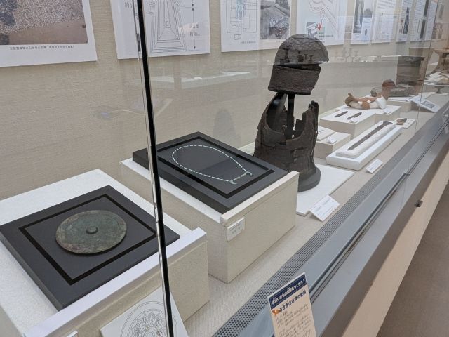 すぐ近くにある心合寺山(しおんじやま)古墳の出土品も多数展示されています。鏡、勾玉、冑、鉄剣など様々な副葬品が見つかっているのです。