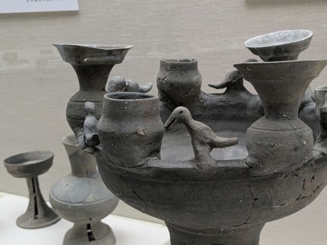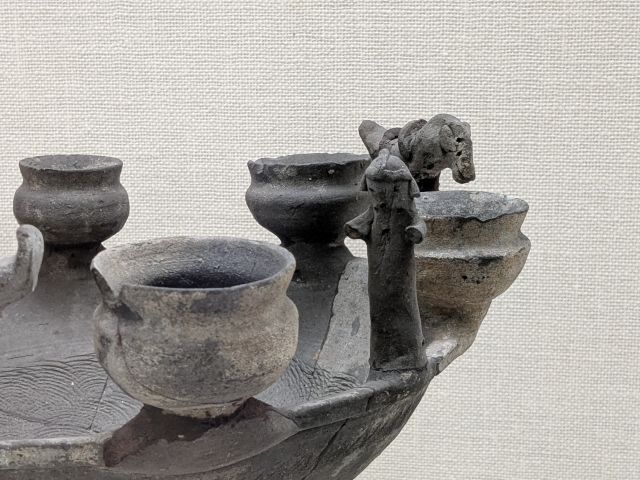 人や動物に加えて小さな甕のようなものも並んでいます。このように大きな器に小さな器が取り付けられているものを子持器台と呼び、こちらは装飾付子持器台という名であるそう。それぞれの器に何を入れていたのでしょうかね。