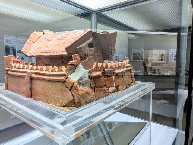「八尾市立しおんじやま古墳学習館」ではレプリカの展示であった「水の祭祀場埴輪」、ここでは「導水施設形埴輪」という名称で展示されています。