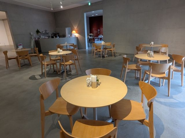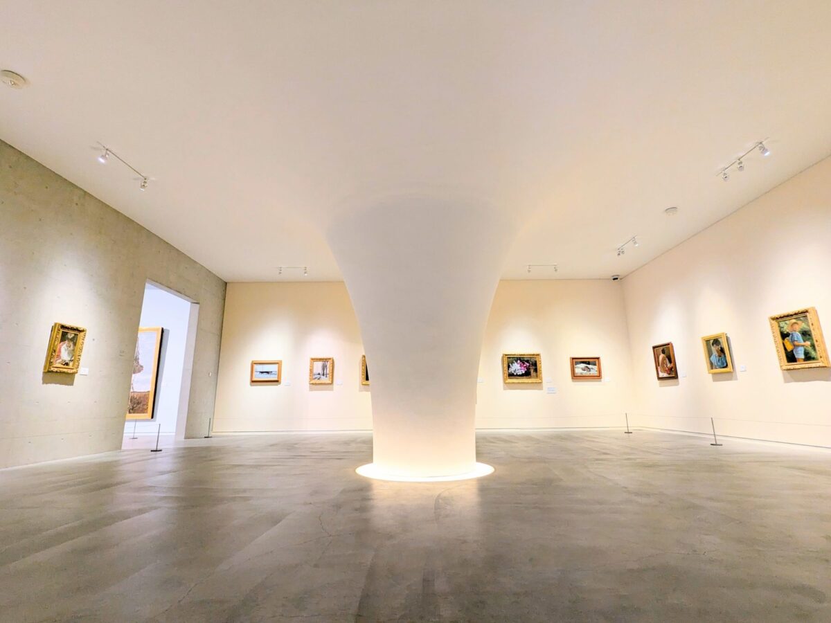 館内はエントランス部分、展示室×2、喫茶スペースと4つに分かれています。1つ目の展示室は天井から床にかけて、漏斗型の柱が落ちています。