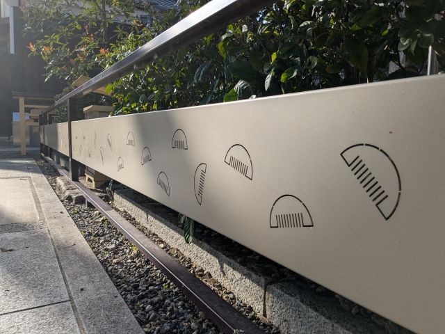 「髪型」をテーマにしたまつりはとっても珍しいので気になりますね!なお、久志塚のまわりのフェンスも櫛のデザインがあしらわれていました。