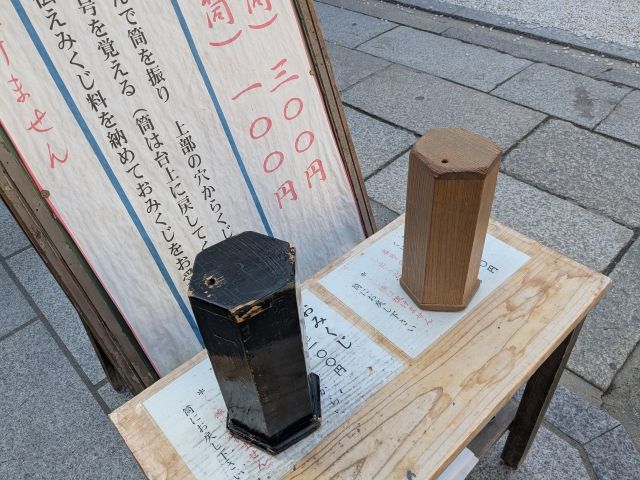 最後におみくじを引いていこうと思います!ここ金比羅宮には、茶筒の「縁みくじ」と黒筒の「おみくじ」、2種類のおみくじがあります。ここはせっかくなので縁みくじに挑戦!