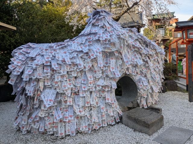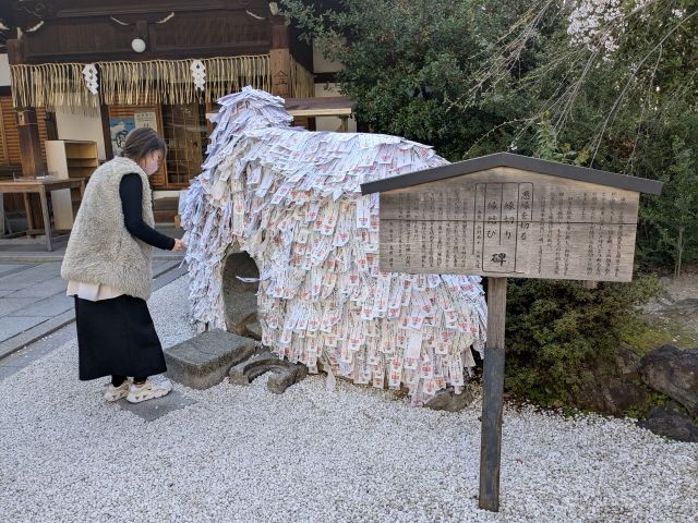 境内に入るとすぐに目に入るのがこちらの縁切り縁結び碑。大量のお札が貼られており、異様な雰囲気を放っています。