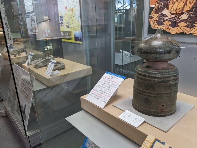 他にも、西側に掛けられていた欄干橋の擬宝珠や、発掘された瓦なども展示されています。