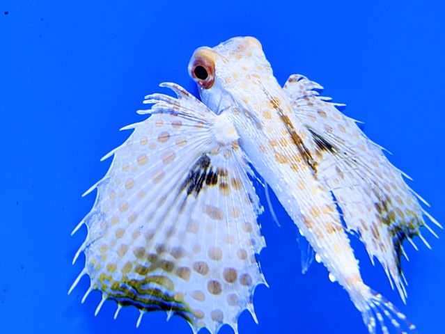 この美しい幼魚はセミホウボウ!成長すると茶色くなりますが、まだこの頃は白くて美しい。ヒラヒラと舞うように泳ぐ姿はまるで妖精です。