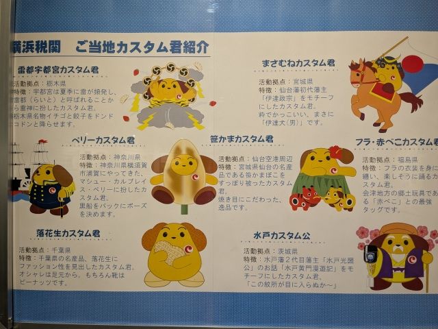 なんでこんなにバリエーションがあるのかと思ったのですが、「税関」は、横浜だけのものではなく、各地の空港や港に存在する機関。カスタム君がご当地化するのは至って自然な流れです。