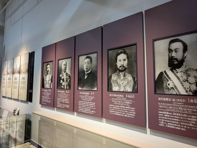 初代税関長・上野景範から始まる歴代の税関長たちの紹介、その奥には歴代税関庁舎の建築紹介も。