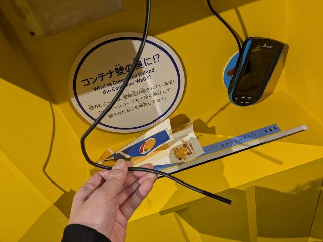 こちらはファイバースコープ。細い管の先についたカメラを隙間にいれて、中を覗いて密輸品を探すというもの。小さなモニターに写される映像を見ながら暗い中を操作する感じ、ドキドキしますね!