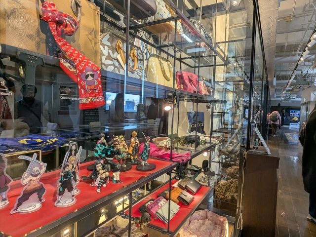 ショーケースの中にずらりと並ぶのはブランド品やアニメのフィギュア。