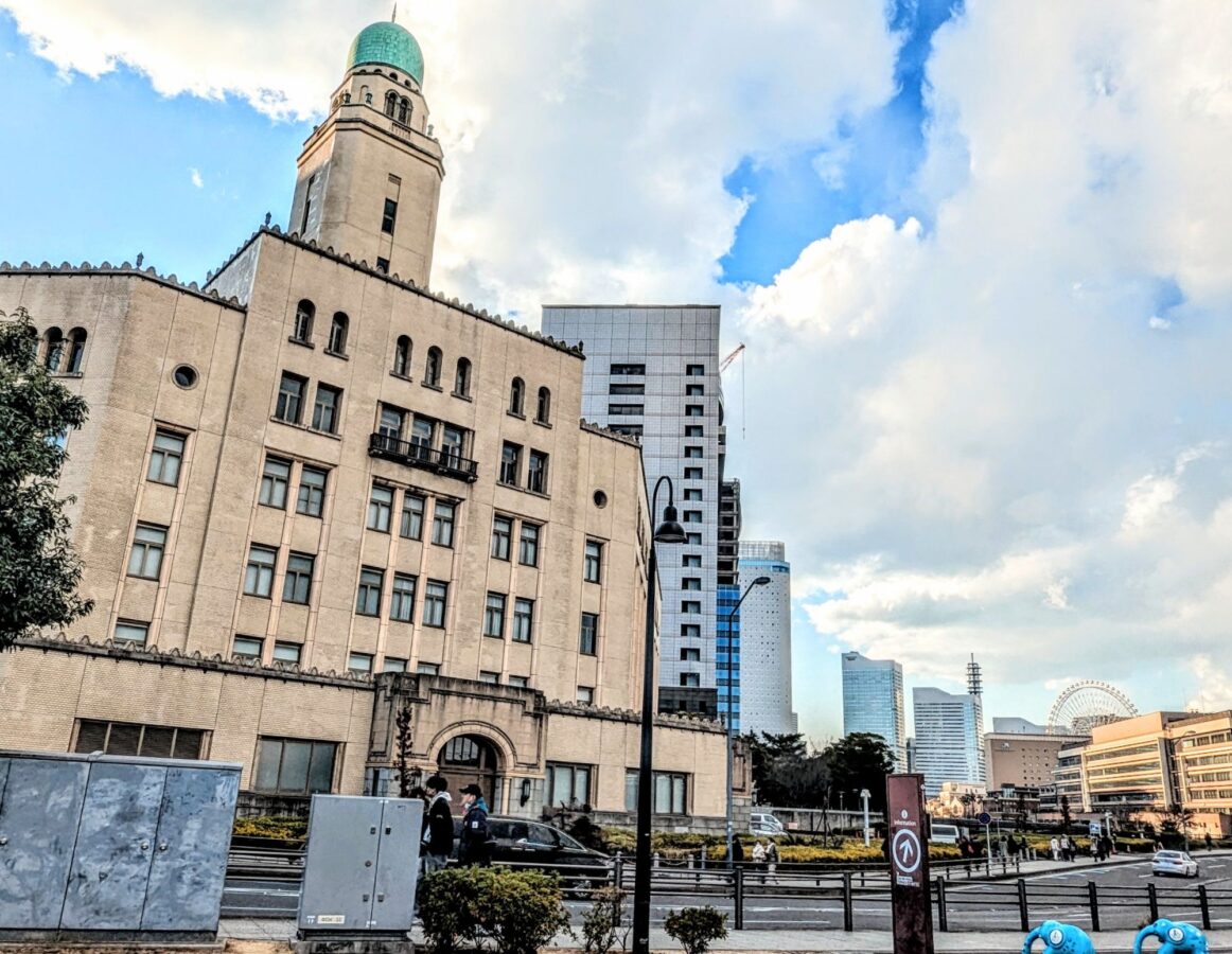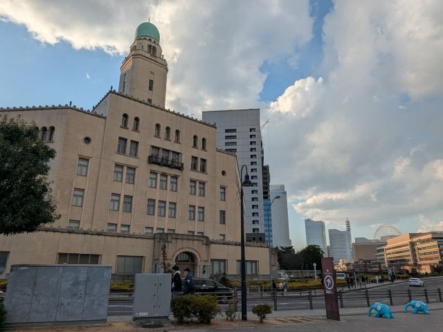 横浜三塔のひとつ、「クイーンの塔」に数えられるのは横浜税関。大正12年(1923年)の関東大震災で倒壊焼失した庁舎に代わり、昭和9年(1934年)に建てられた建造物で、当時は横浜で最も高い建物であったそうです。老朽化や執務スペースの不足を解消するため、改修増築が行われ、平成15年(2003年)に現在の姿になりました。
