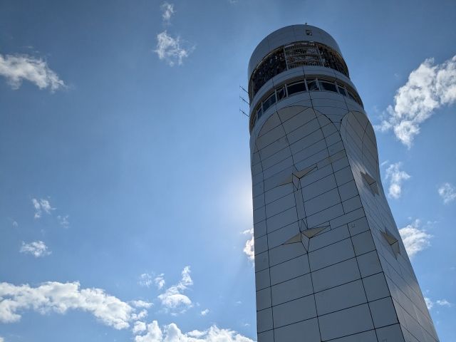 タワー上部に備えられているのは信号板。写真では分かりづらいのですが、アルファベット1文字が映し出されています。