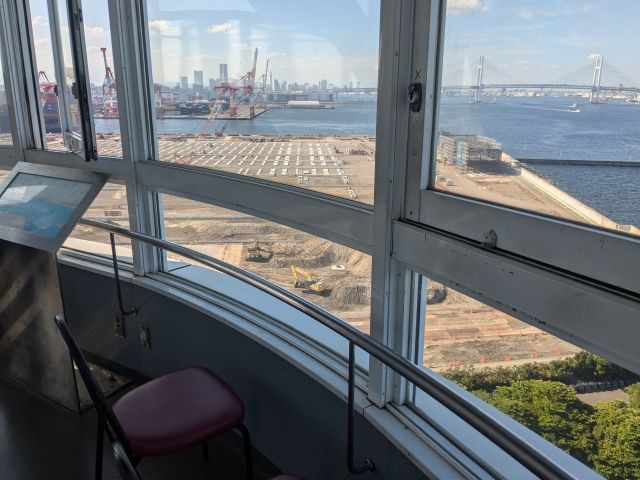 たどり着いた展望室。高さは地上36.5m、海抜42.4m。360度に広がる横浜港町の景色が広がります。