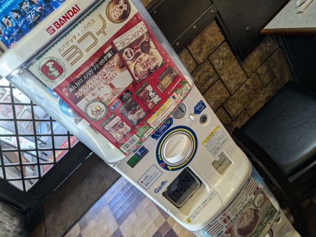 レジのそばでは、おみやげ用のレトルトソースを販売しています。そして、そのレトルトソースを模したガチャもありました!食べた記念にぜひチャレンジを!