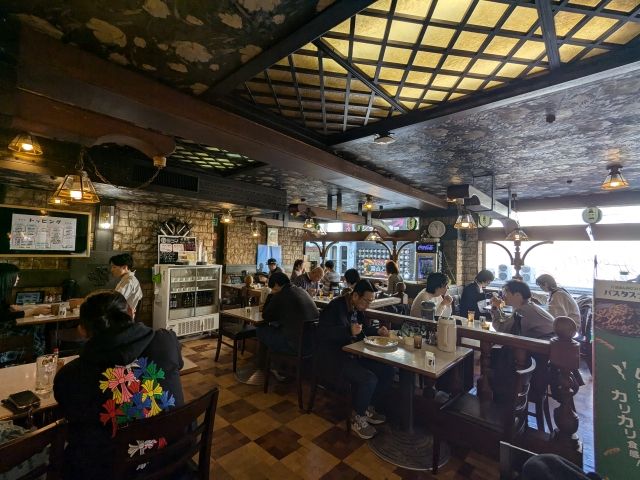 店内は4名テーブルが10基、2名テーブルが2基、カウンターが3席ほど。