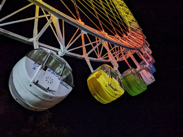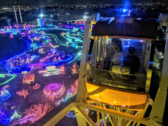 ジュエルミネーション期間は、ほとんどのアトラクションが日没後も営業しています。そんな中でも人気なのは大観覧車!