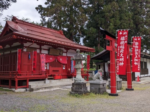 真っ赤な社殿が美しい福徳稲荷神社。6代藩主・上杉宗憲が勧請した稲荷神社に、上杉鷹山の信仰していたという稲荷祠を合祀しています。